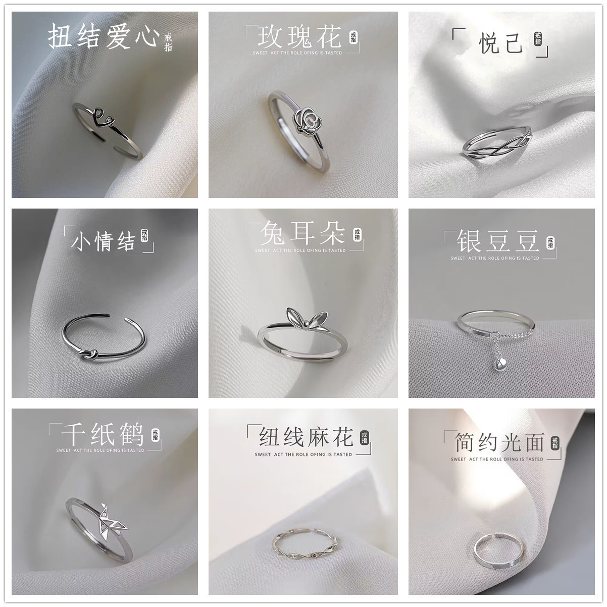 Korean Style Index Finger Ring Women's Ins Trendy S925 Sterling Silver Minimalist Square Distinctive Open Adjustable Finger Ring