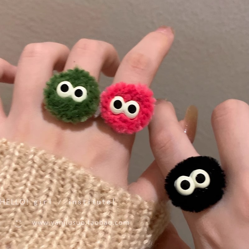 Cute small bristle plush ring female autumn and winter niche design cartoon funny index finger ring fashion personalized ring