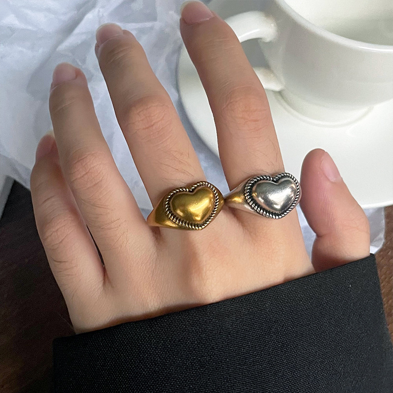 Lanzhi European and American Cross-Border Heart Retro Thai Silver Ring Men's Ancient Gold Niche Exaggerated Heavy Industry 925 Silver Ring Women