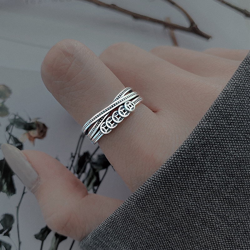 s925 Sterling Silver Good Luck Coin Copper Money Ring Female ins Trendy Retro Niche Personality Open Finger Ring