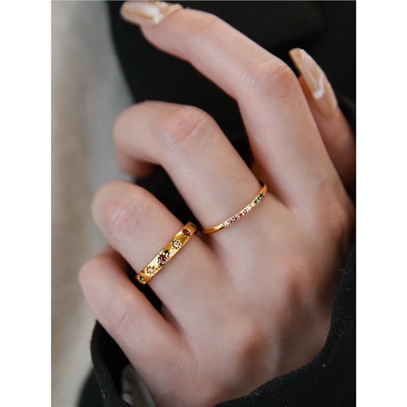 Silin 2025 Light Luxury Niche Micro-inlaid Colorful Zircon Crystal Ring Women's Ring Plated with 18K Gold