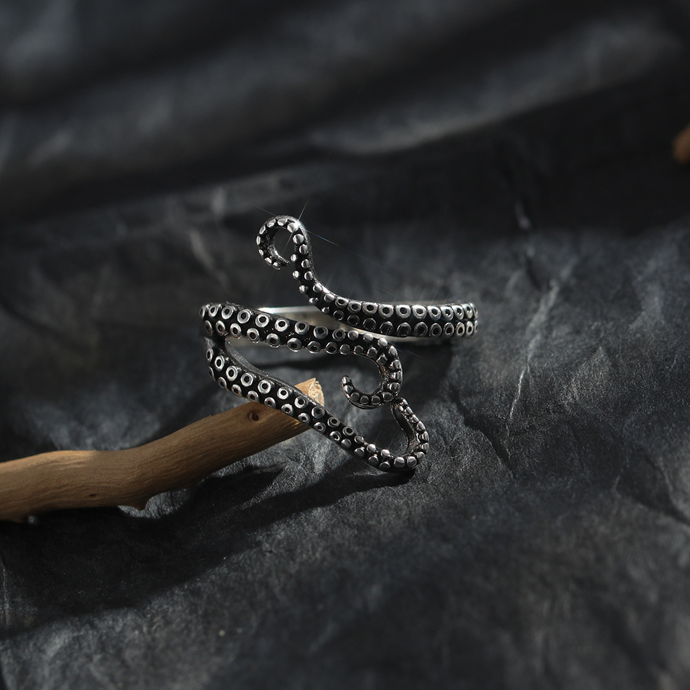 Retro Thai silver exaggerated domineering skull finger ring Thai silver men's opening adjustment ring personality popular