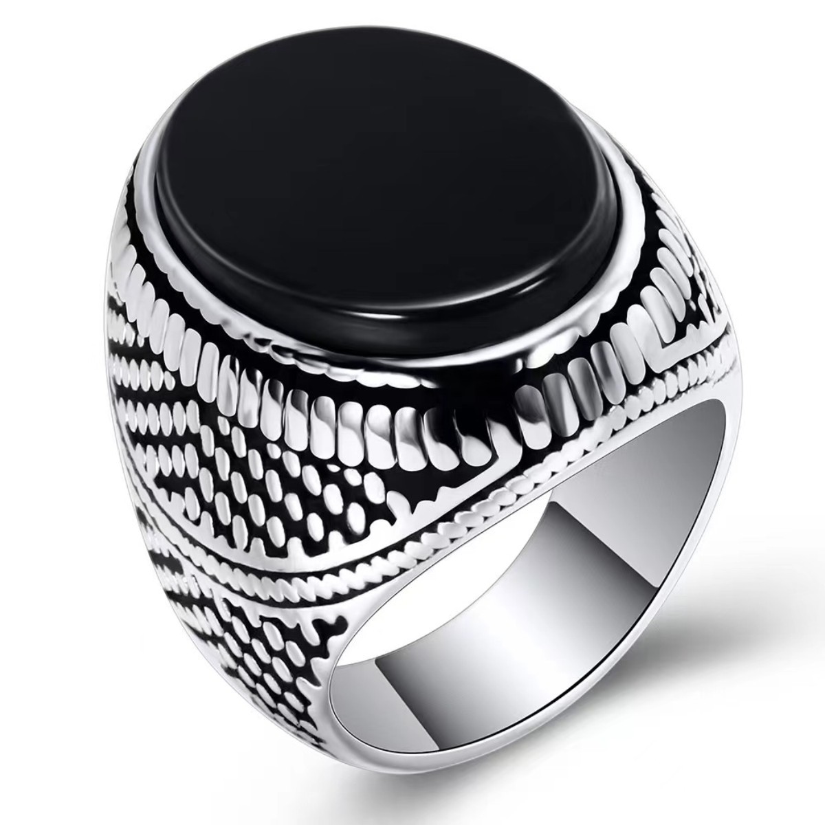 Cross-border explosions inlaid black gem retro ring men's fashion ring Europe and the United States Amazon hot-selling manufacturers wholesale
