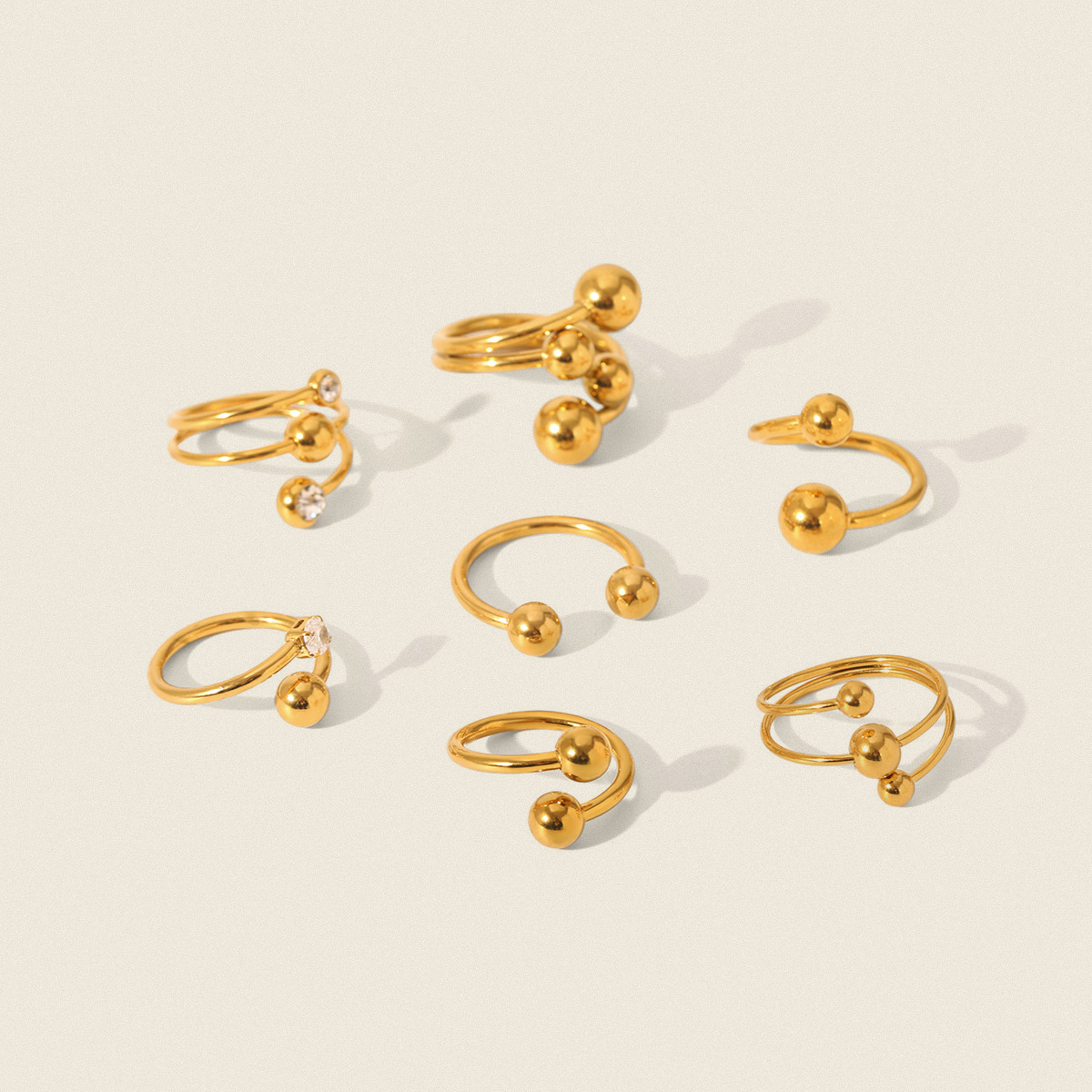 Cross-border Hot Selling Stainless Steel Gold Ball Opening Ring 18K Gold Titanium Steel Stacked Wind Anti-allergy Jewelry for Women