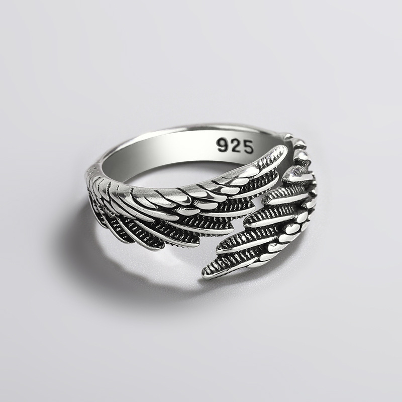 Dressed Feather Ring Hobby Street Hip Hop Plated S925 Silver Wings Guardian Angel Wings Pinklet Tail Ring