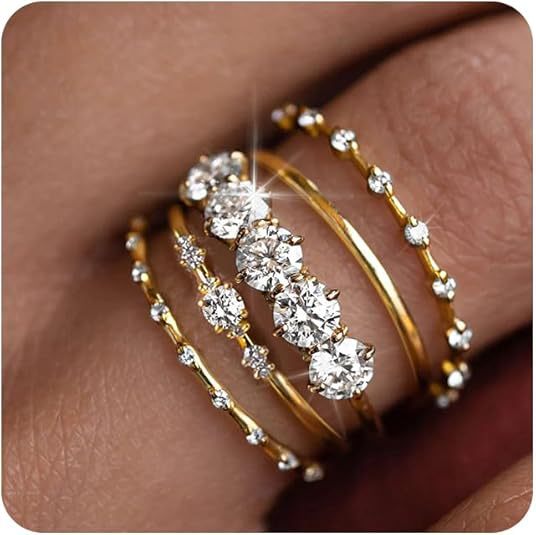 Amazon New Jewelry Fashion Ins Style Elegant Round Zircon Diamond Women Stackable Five-Piece Ring