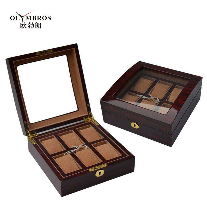 Oublanc Watch Box Luxury Piano Lacquer Wooden Watch Box Velvet Pillow Cushion 6-Slot Storage Box Watch Packaging Box