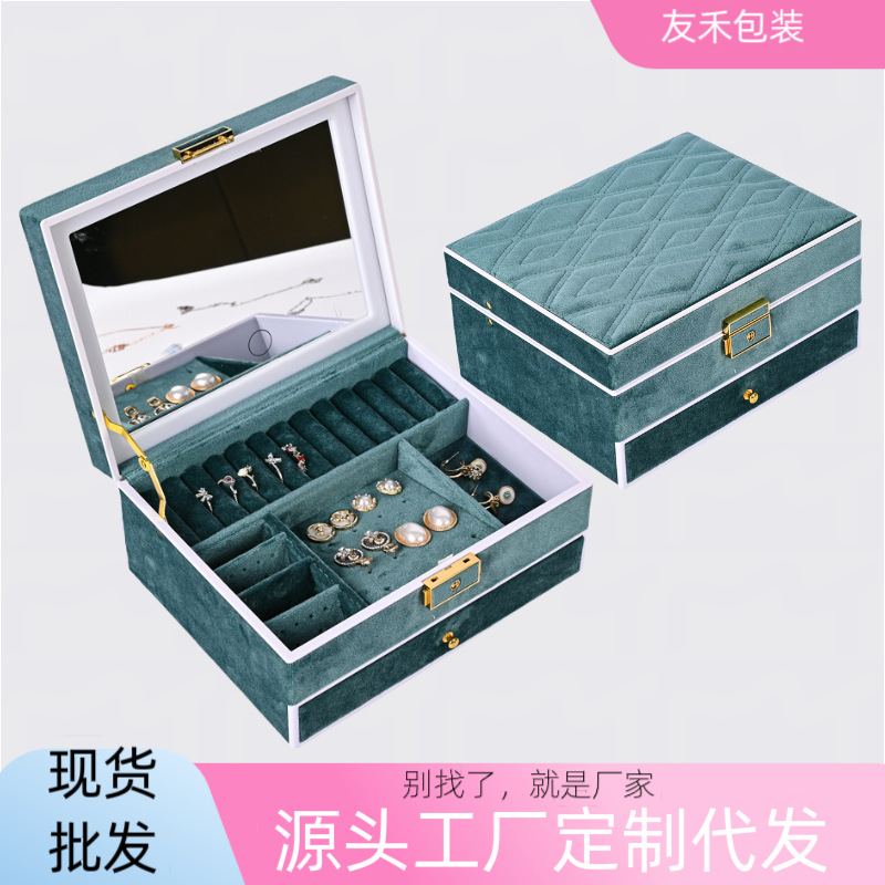 Jewelry Box Cross Border Velvet Travel Portable Jewelry Jewelry Ring Earrings Storage Box Double Layer Amazon