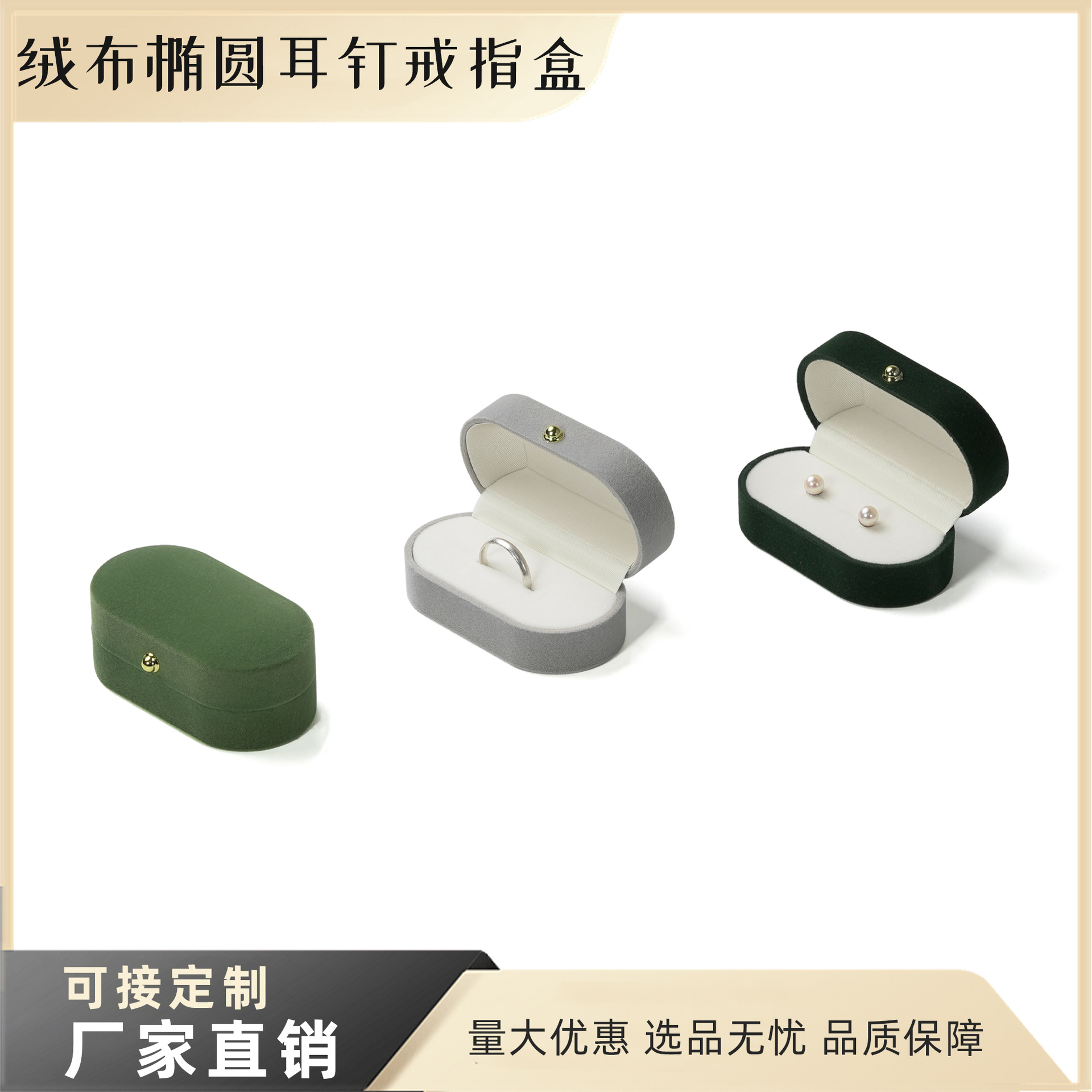 Cross-Border Oval Velvet Jewelry Packaging Box Jewelry Storage High-End Travel Earrings Ring Storage Box