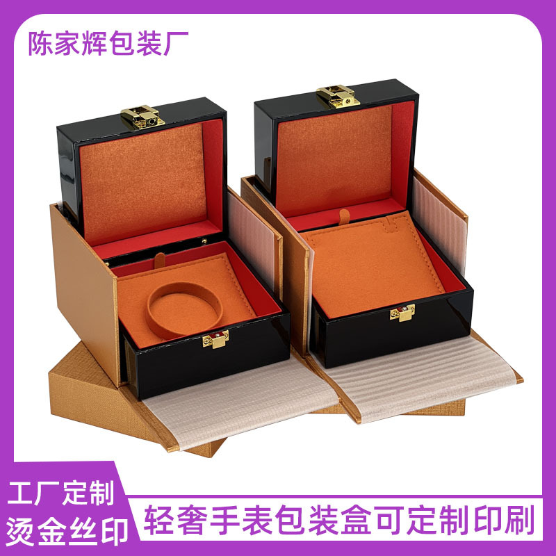 Customized Jewelry Gift Box, High-End Piano Paint Velvet Base, Bracelet, Ring, Pendant, Three Gold Box Storage Box, Flip Cover