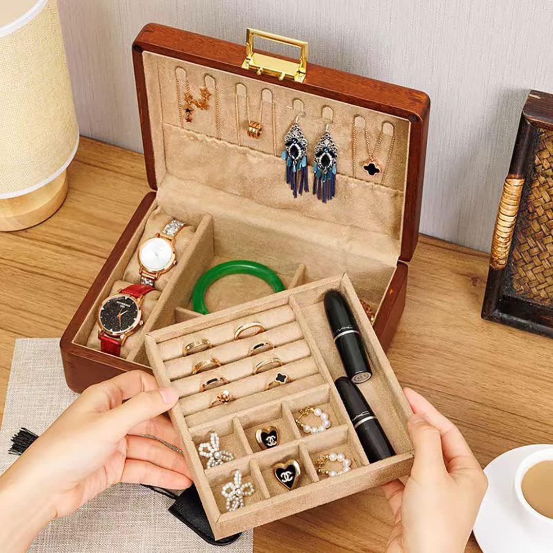 Processing and Customizing Exquisite Jewelry Boxes Solid Wood Jewelry Storage Boxes Velvet Lined Retro Wooden Jewelry Storage Boxes