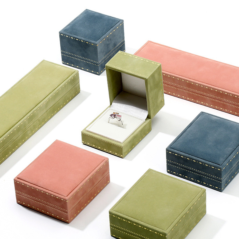 Double Grass Green Velvet Ring Box Earrings Necklace Box Bracelet Box Bracelet Bracelet Box Jewelry Packaging