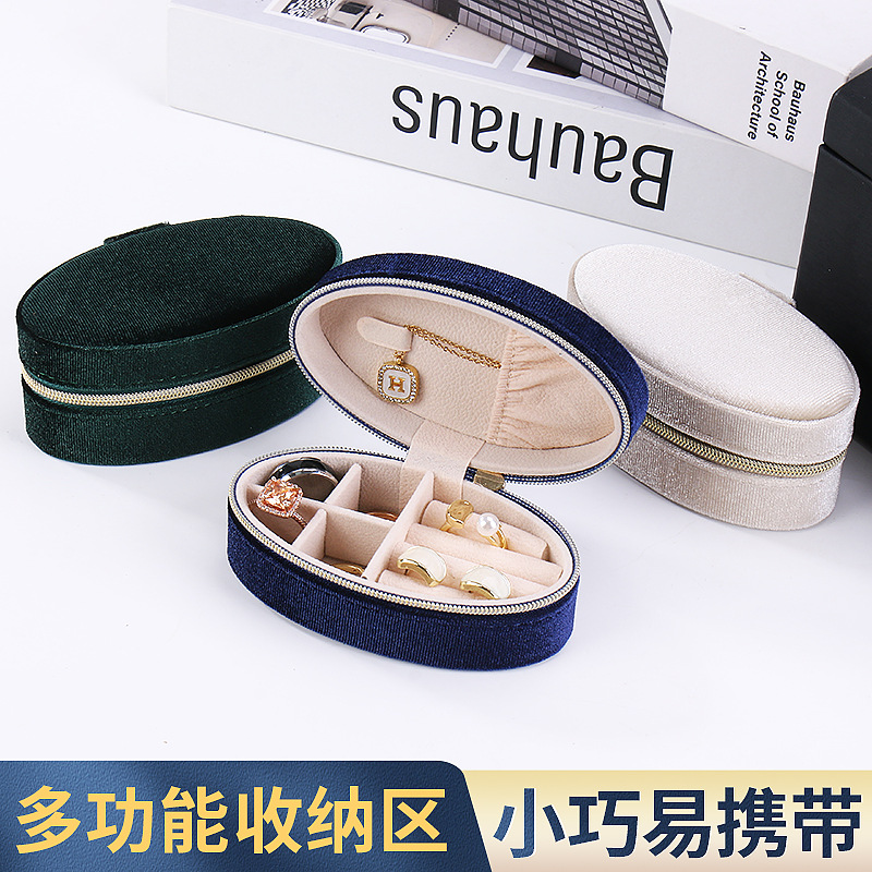 Velvet Oval Jewelry Box Jewelry Storage Box Ring Necklace Earrings Jewelry Box Simple Zipper Box Direct from Factory