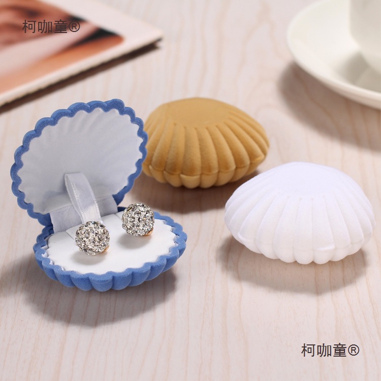 Girl's Shell Korean Velvet Jewelry Box Earrings Ring Gift Box for Gifting Cute Photo Props Metabo