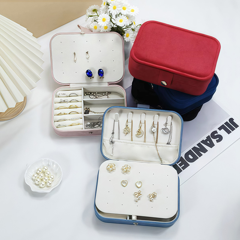 Cross-Border New Double-Layer Velvet Jewelry Box Women's High-End Jewelry Necklace Ring Earrings Earrings Jewelry Storage Box