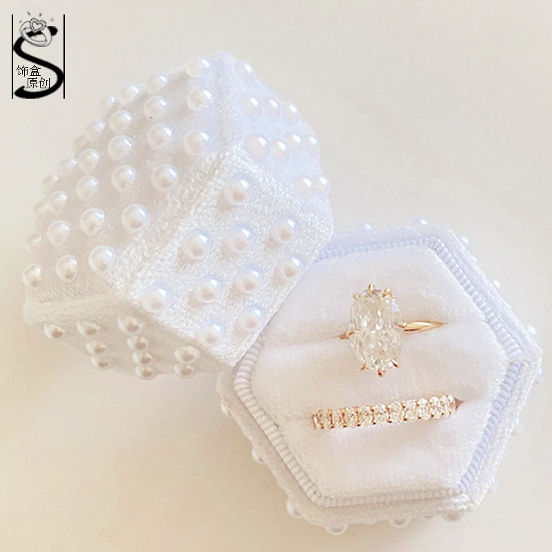 Jewelry Box new velvet ring box hexagonal jewelry storage box with pearl ring storage box wedding ring box