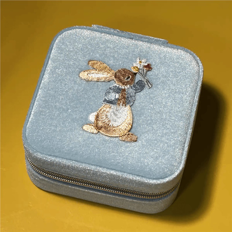 Rabbit Velvet Jewelry Box Cute Square Earrings Earrings Ring Portable Jewelry Storage Box