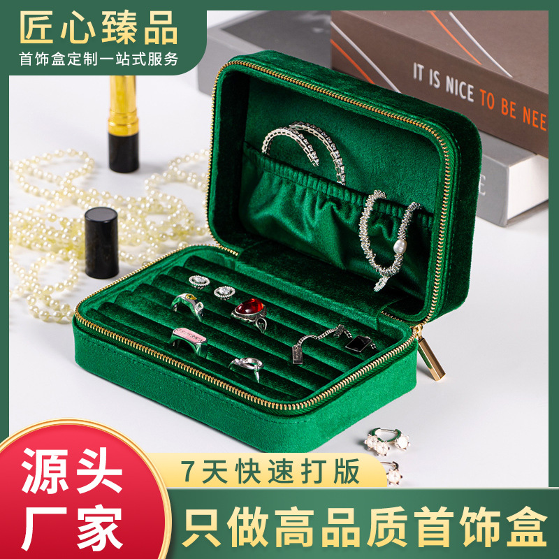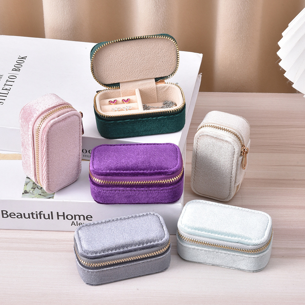 Simple Solid Color Portable Jewelry Box Creative Ring Necklace Storage Box Velvet Zipper Jewelry Box in stock