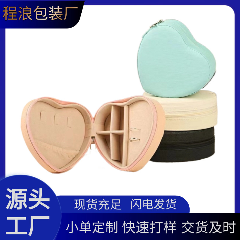 Factory production and processing of heart-shaped jewelry box PU leather velvet lining can print LOGO heart-shaped travel portable storage
