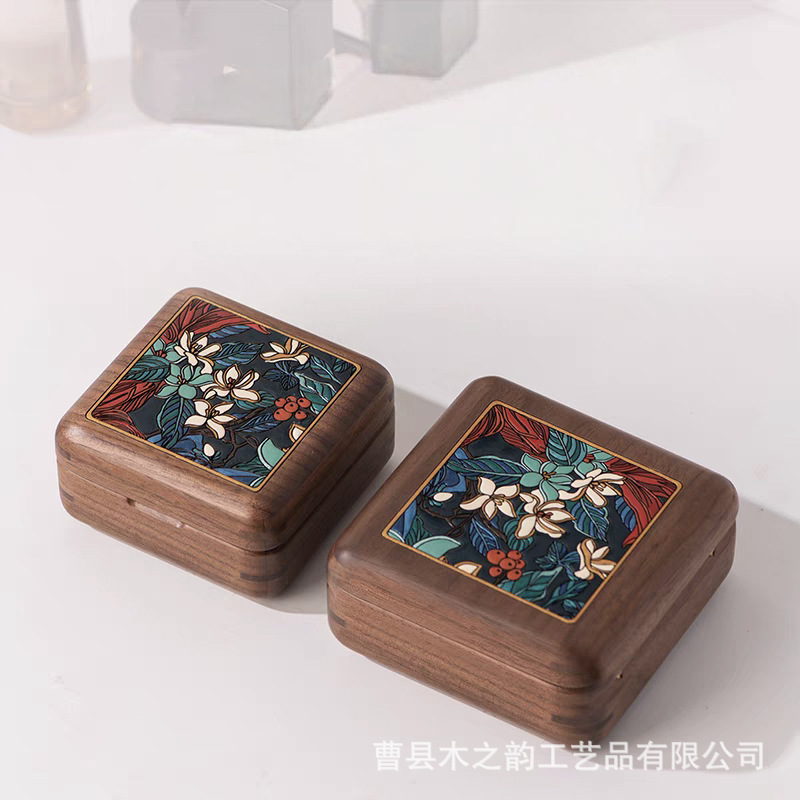 Black Walnut Wooden Jewelry Box Magnetic Wedding Ring Packaging Box Printed Velvet Necklace Jewelry Storage Box
