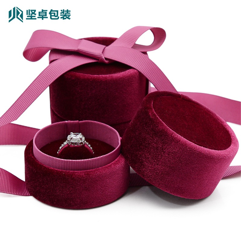 Velvet Jewelry Ring Box Custom-Made Velvet Pendant Earring Ribbon Cylindrical Box Octagonal Couple Ring Gift Box