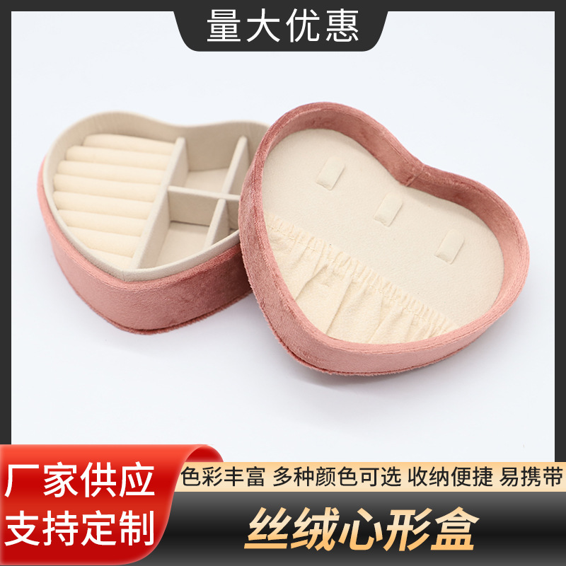 Velvet Heart-Shaped Box, Portable and Compact Heart-Shaped Jewelry Box, Portable Earring Storage Box, Factory Supply