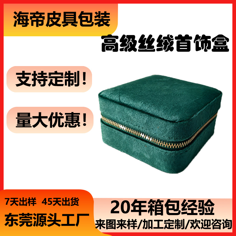 Simple Solid Color Portable Jewelry Box Creative Ring Necklace Storage Box Velvet Zipper Jewelry Box in stock
