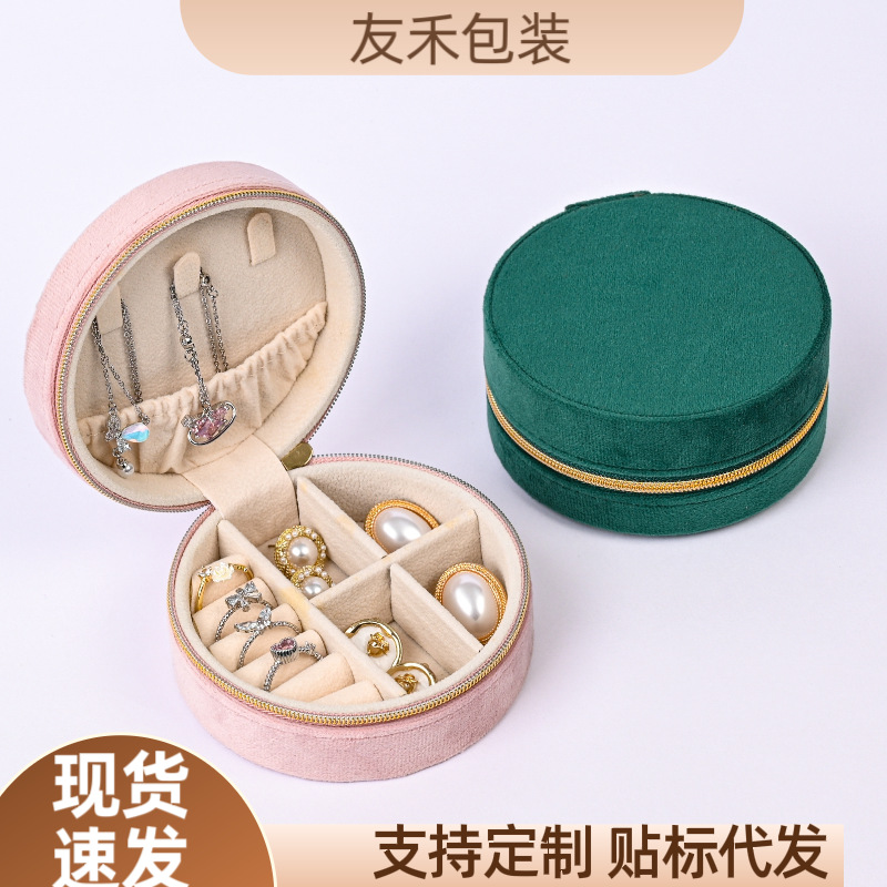 Cross-Border Oval Jewelry Storage Box Velvet Mini Portable Jewelry Packaging Box High-End Zipper Retro Jewelry Box