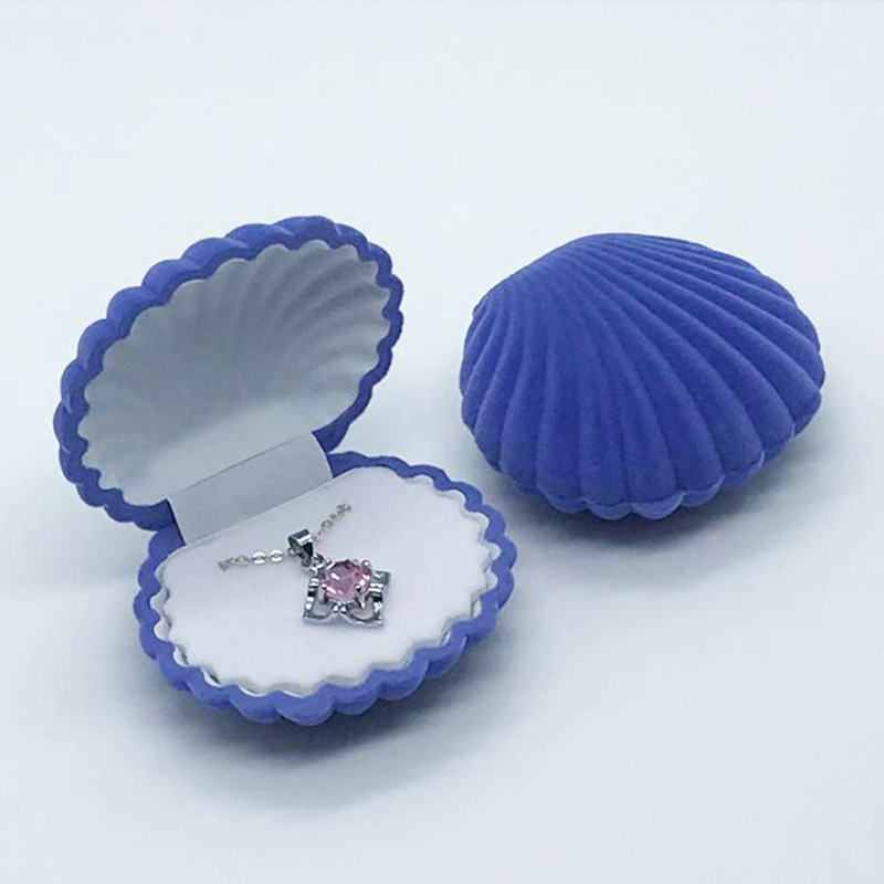 Plastic Flocked Shell Jewelry Box Retro Girly Heart Shell Earrings Necklace Jewelry Storage Box Velvet Gift Box