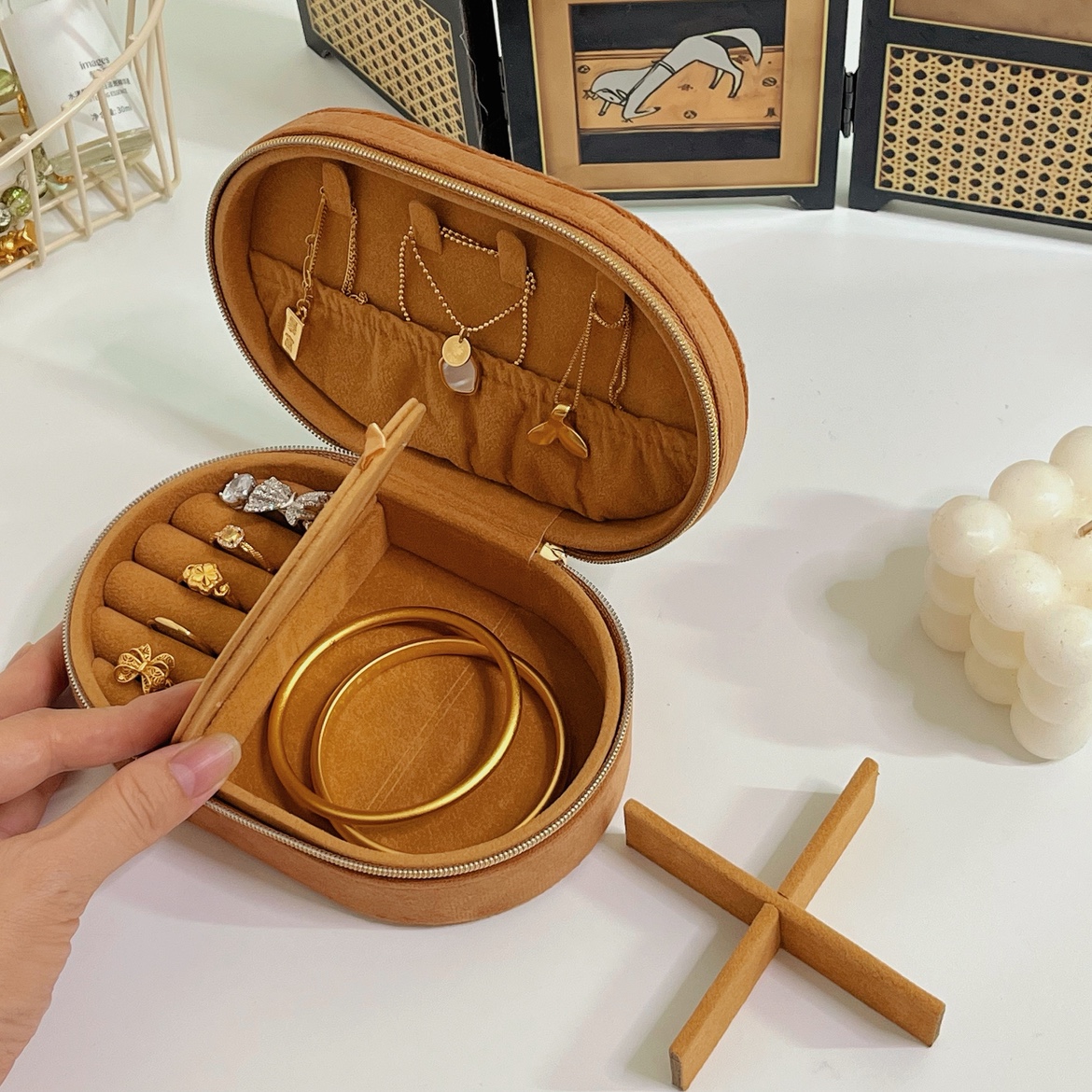 High-End Velvet Portable Jewelry Box for Rings, Bracelets, Travel Accessories, Anti-Oxidation and Bumps