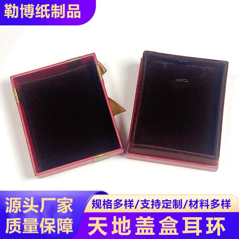 Heaven and Earth Cover Plus Flower Earring Box, High-End Velvet Lined Jewelry Box, Anti-Scratch Card Slot Fixed Jewelry Box Wholesale