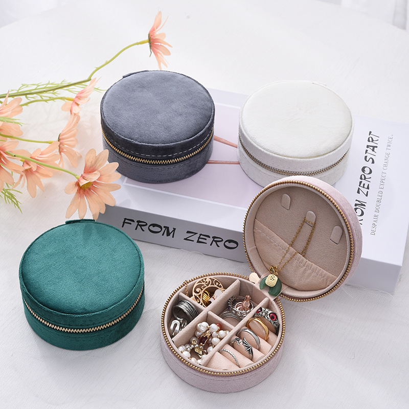 New Velvet Portable Round Jewelry Storage Box Necklace Earrings Jewelry Box Jewelry Ring Storage Box