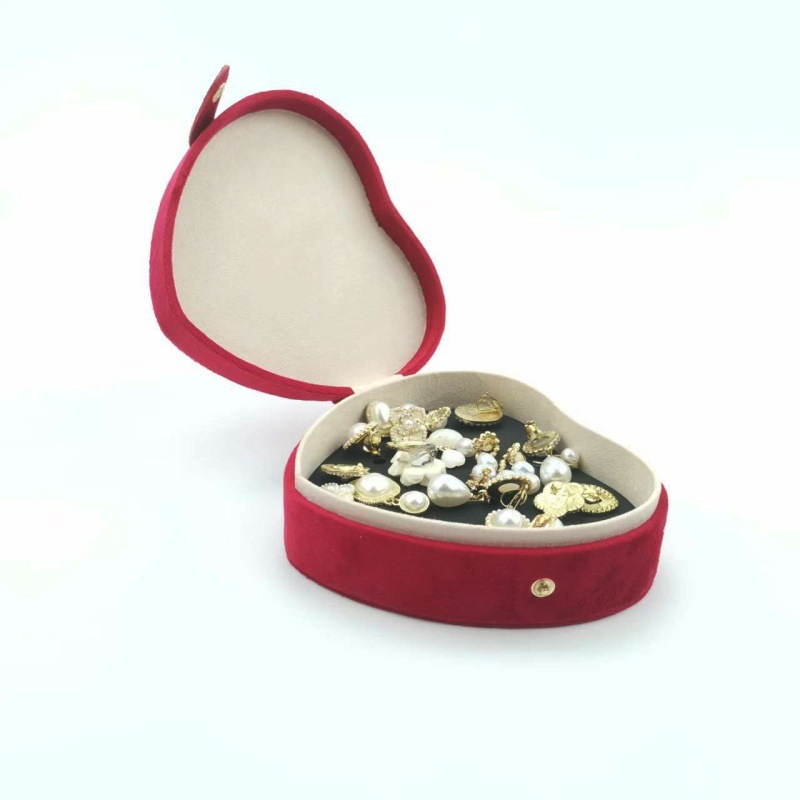 Customized Heart Jewelry Box Flocked Earrings Ring Storage Box Travel Portable Velvet Jewelry Storage Box