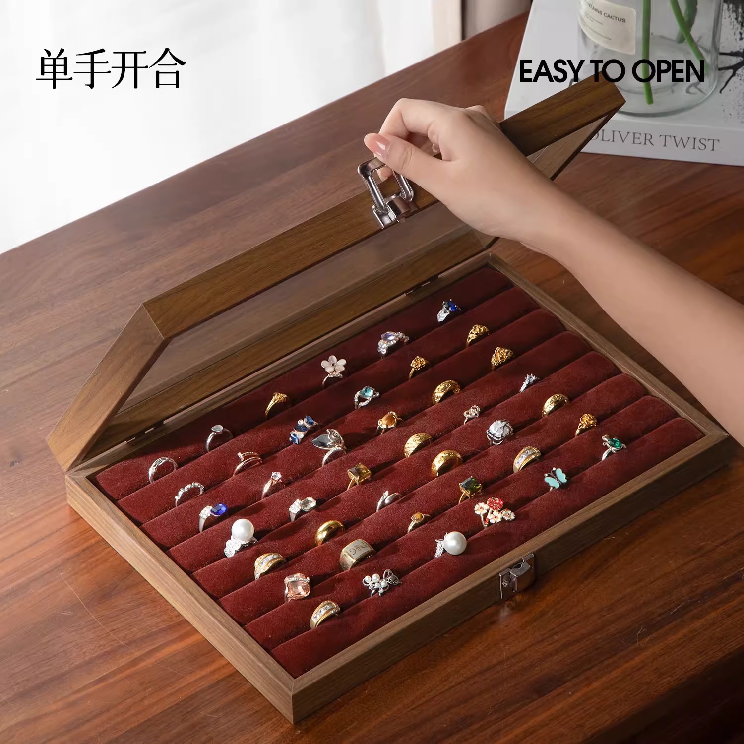Walnut grain velvet ring storage box dustproof oxidation high-grade complex classical large-capacity ring storage box