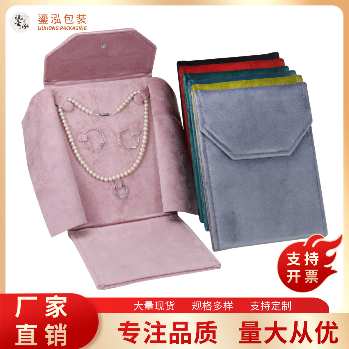 Spot Velvet Cloth Pearl Necklace Bag Simple Snap Pearl Necklace Box Earrings Ring Necklace Jewelry Storage Box