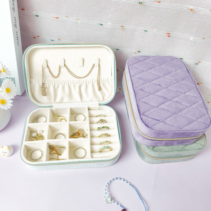 Cross-Border Oval Jewelry Storage Box Velvet Mini Portable Jewelry Packaging Box High-End Zipper Retro Jewelry Box