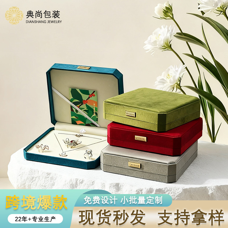 High-End Octagonal Velvet Jewelry Box Set Velvet Pearl Necklace Box Mother's Day Jewelry Storage Box Gift Box