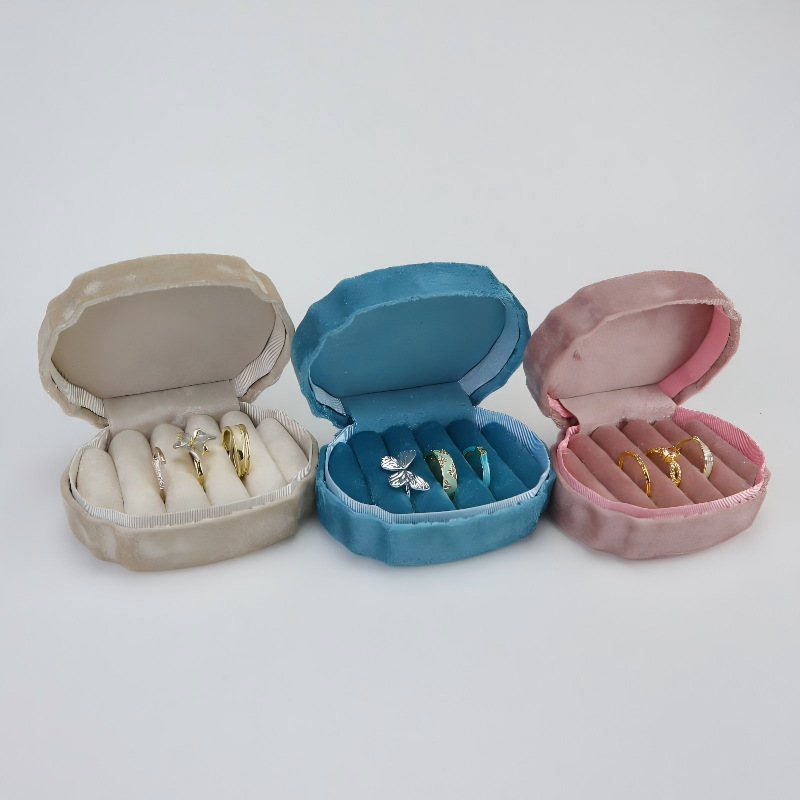New High-End Velvet Multi-Position Ring Box Storage Box Portable Earring Box Travel Jewelry Box Packaging Box Customization