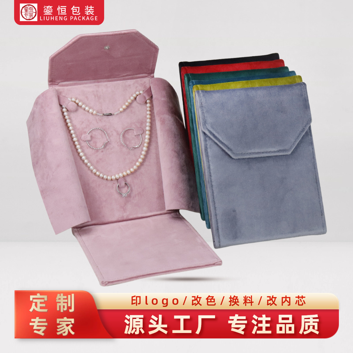 Customized Velvet Cloth Pearl Necklace Bag Simple Snap Pearl Necklace Box Earrings Ring Necklace Jewelry Storage Box
