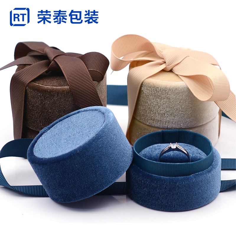 Customized Cylindrical Ribbon Ring Box Earrings Pendant Velvet Hexagonal Packaging Box Jewelry Ring Gift Box