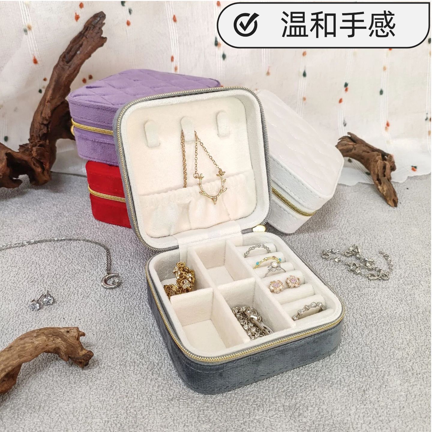 Customized Factory Mini Velvet Zipper Jewelry Box Multifunctional Jewelry Storage Box Ring Earrings Casual