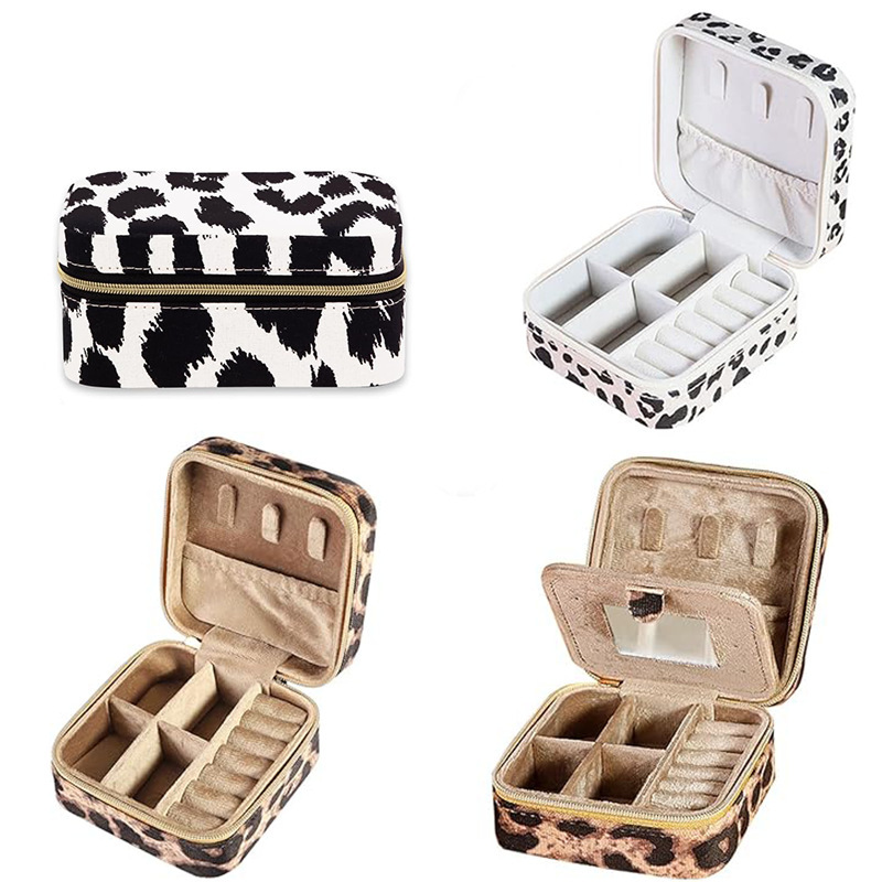 Customized Portable Printed Small Jewelry Storage Bag with Mirror, Travel Metal Zipper Jewelry Box with Velvet Texture