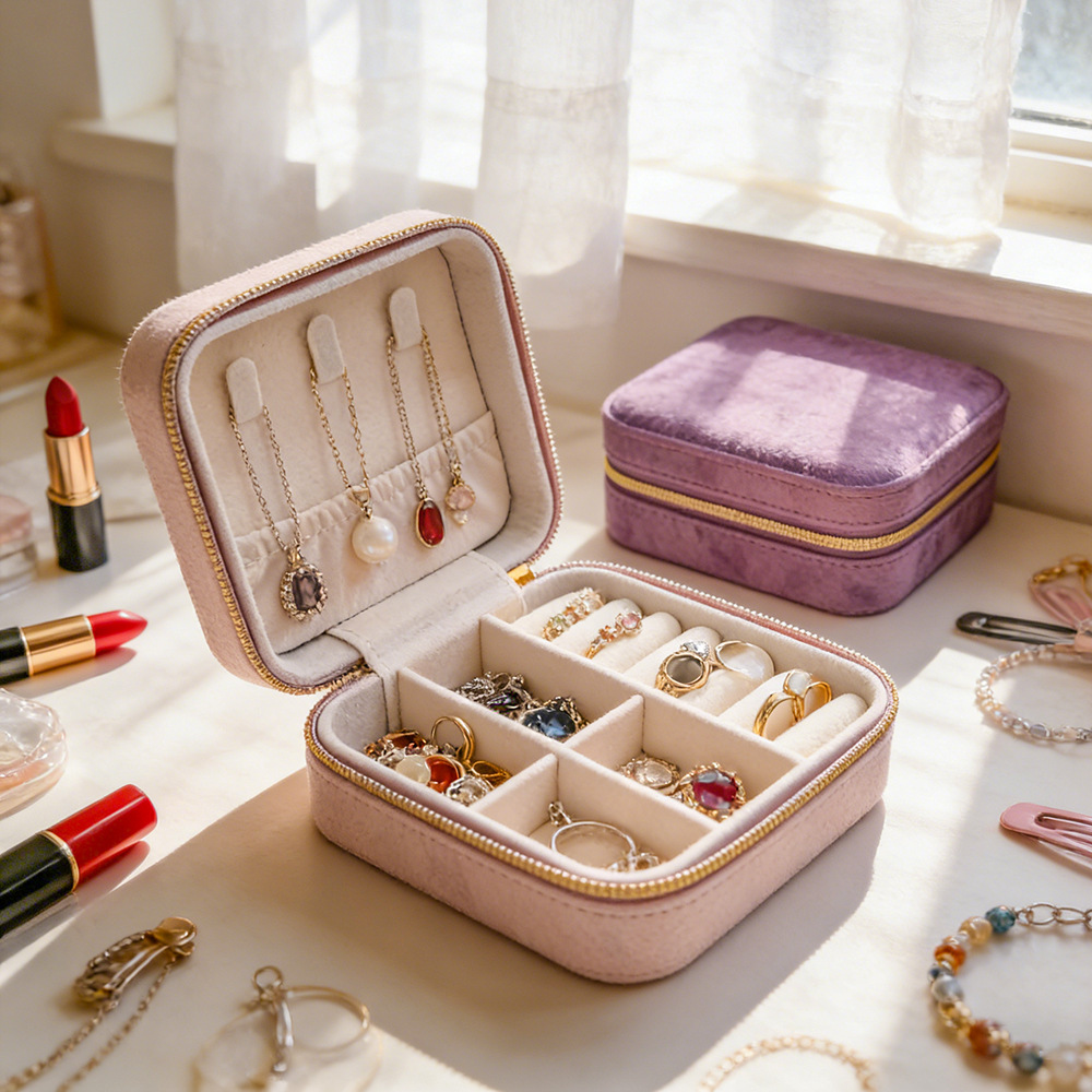 Mini Portable Square Velvet Gift Jewelry Box Earrings Earrings Ring Lipstick Necklace Jewelry Storage Box