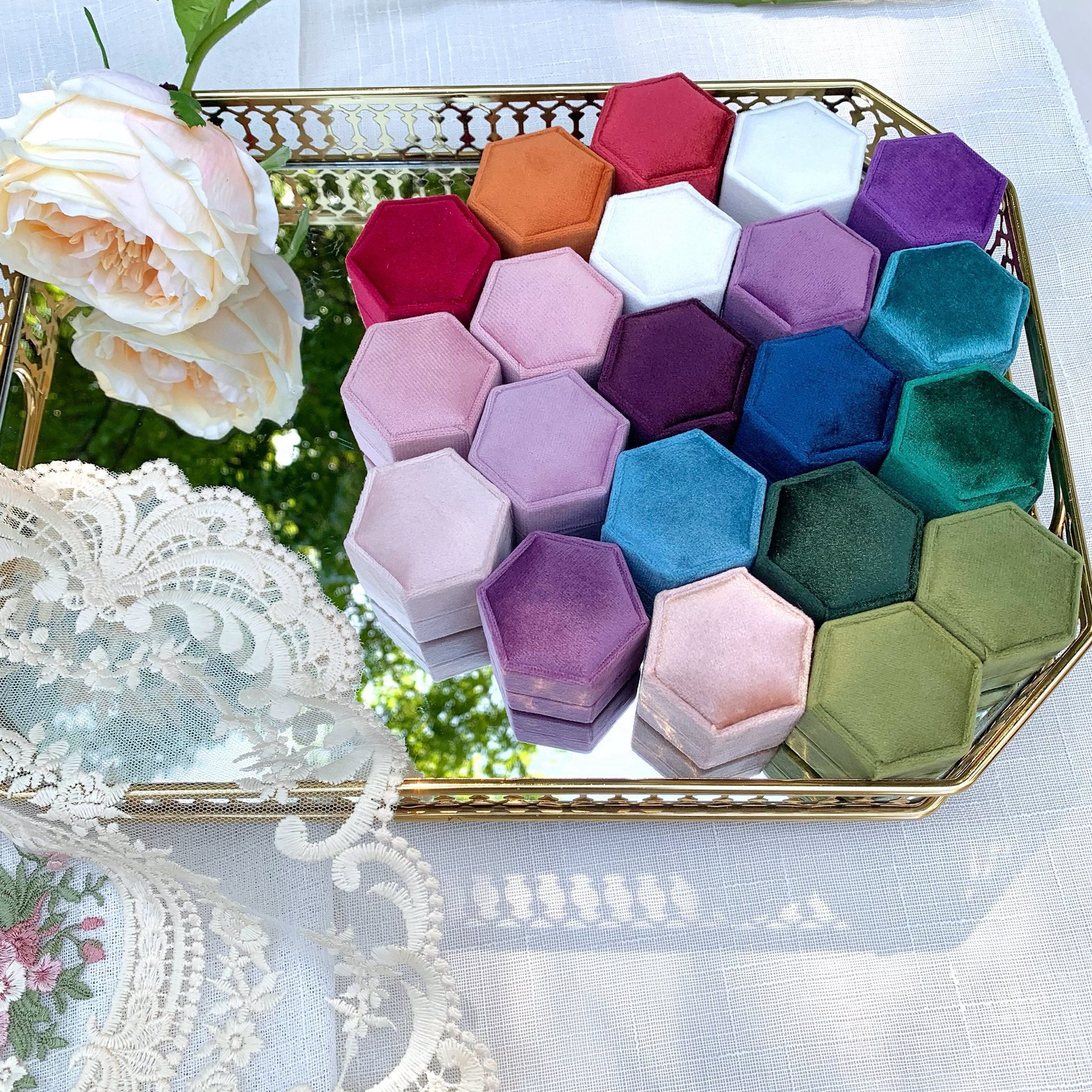 Italian Velvet Hexagonal Ring Box Wedding Proposal Ring Exchange Ring Box Photography Props