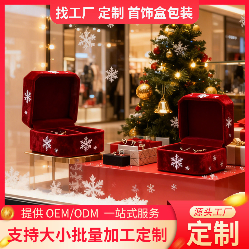 High-End Christmas Jewelry Box Velvet Texture Gift Box Free Design Logo Corporate Custom Gift Packaging Box