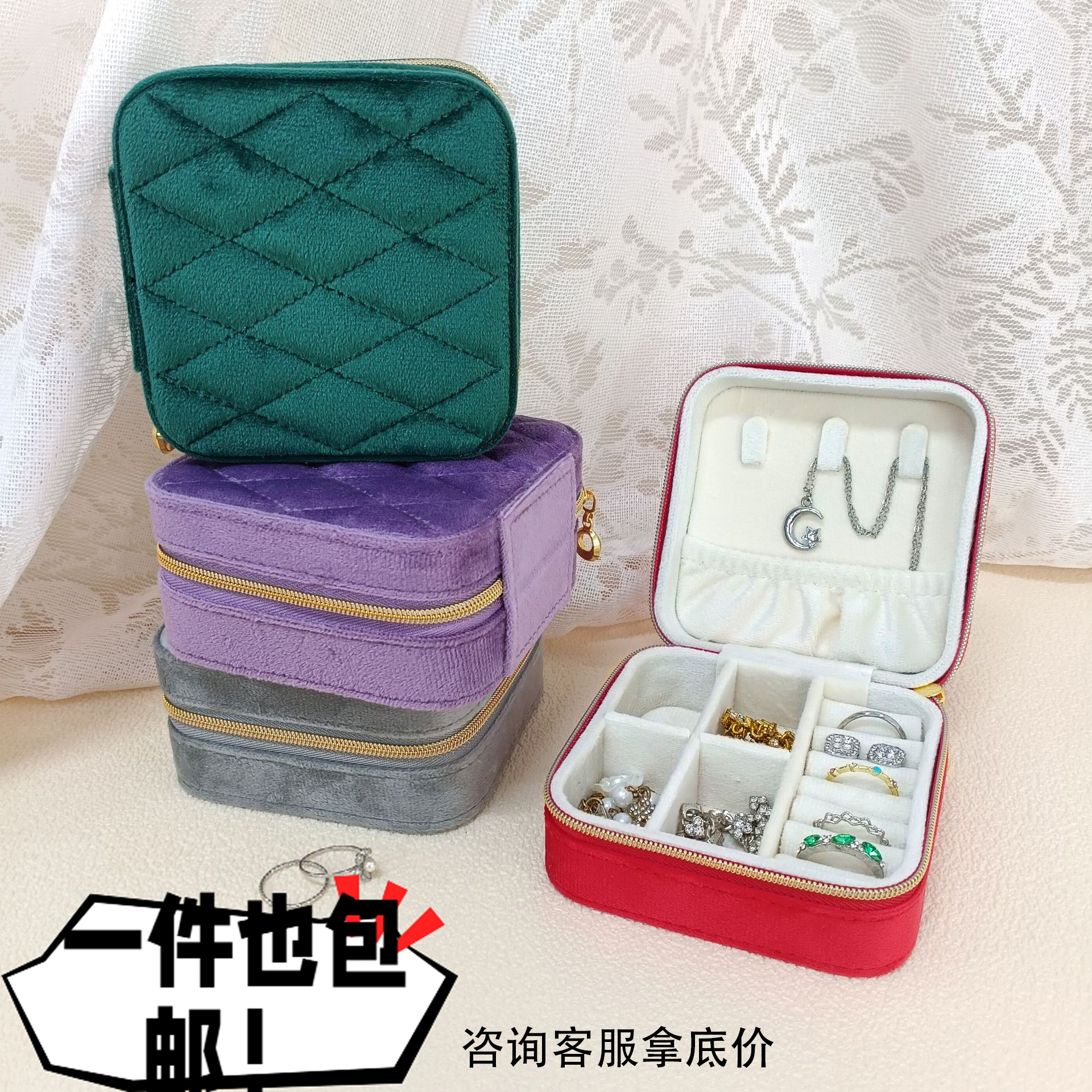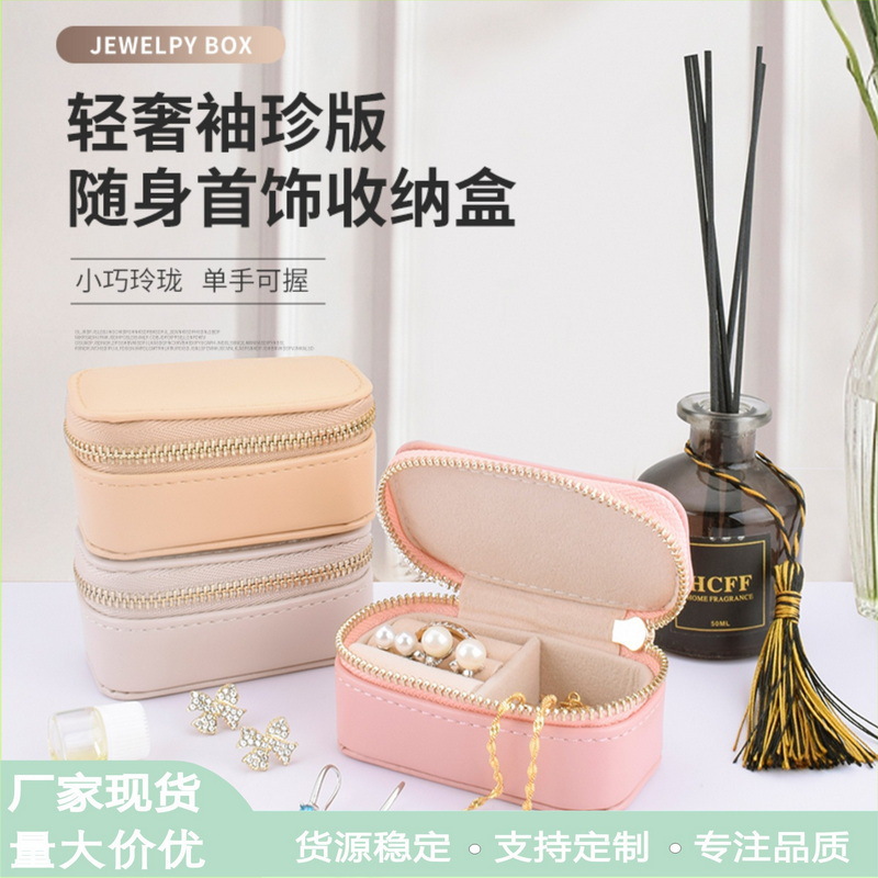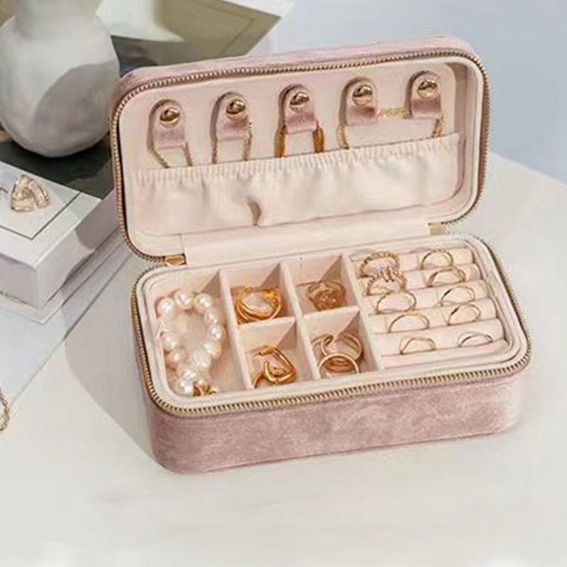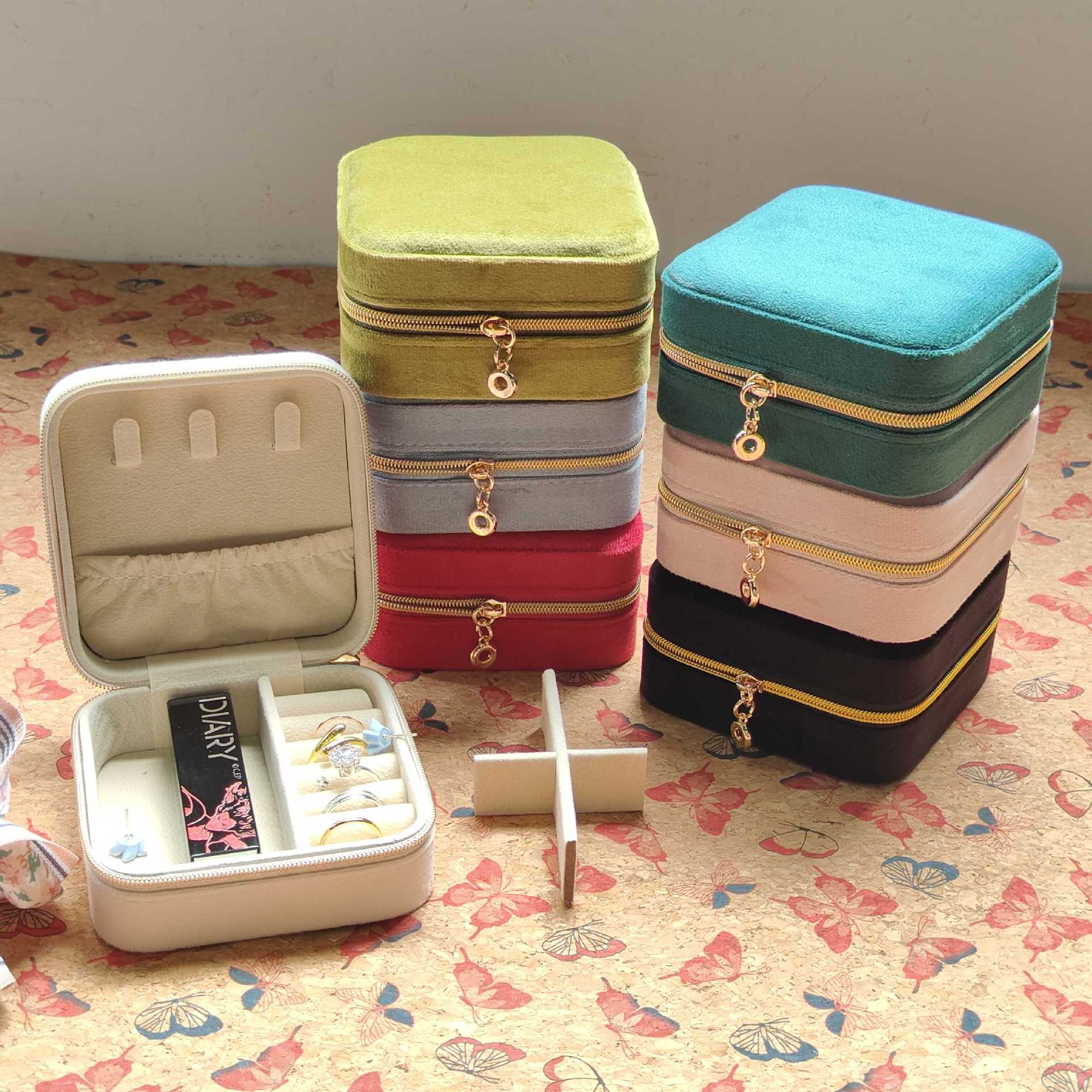 Cross-Border Popular Velvet Jewelry Storage Box for Rings, Necklaces, and Accessories with Zipper Packaging