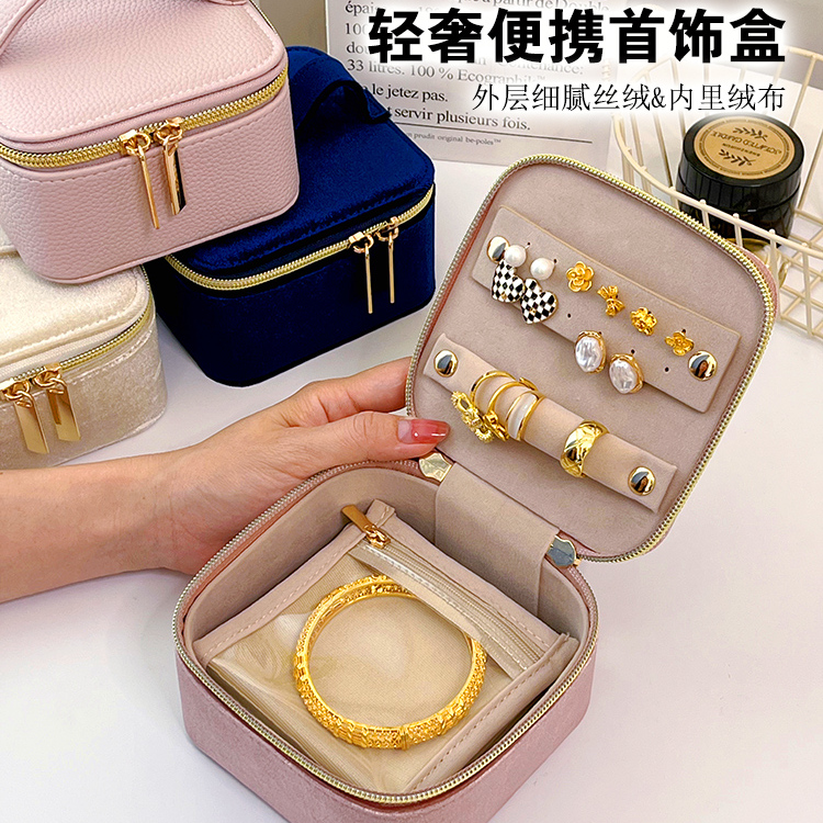Advanced Plush Cloth Jewelry Storage Box Portable Light Luxury Double Zipper Velvet Bag Bracelet Box Bracelet Ring Jewelry Box