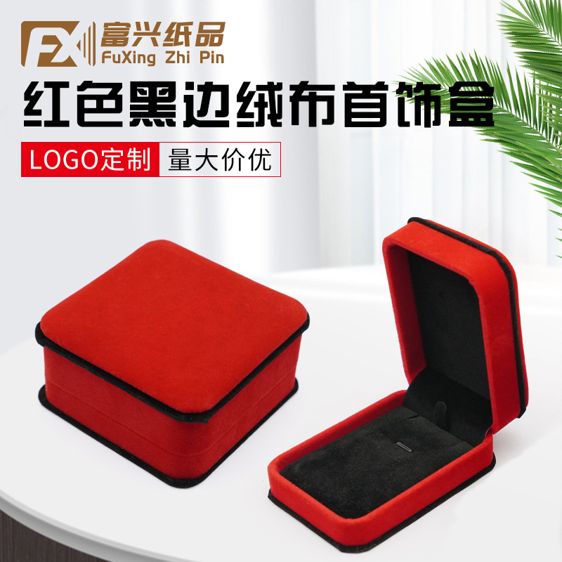 Red and Black Contrasting Velvet Jewelry Box Four-Piece Set with Rounded Corners Bracelet Bracelet Ring Necklace Pendant Velvet Jewelry Gift Box