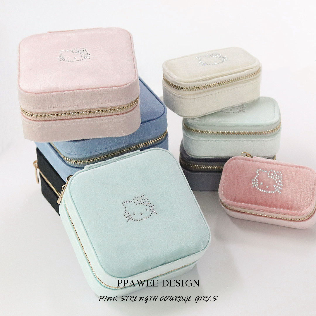 Kitty Velvet Portable Jewelry Box for Home Girls with Earrings, Cute Storage Box, Compact Travel