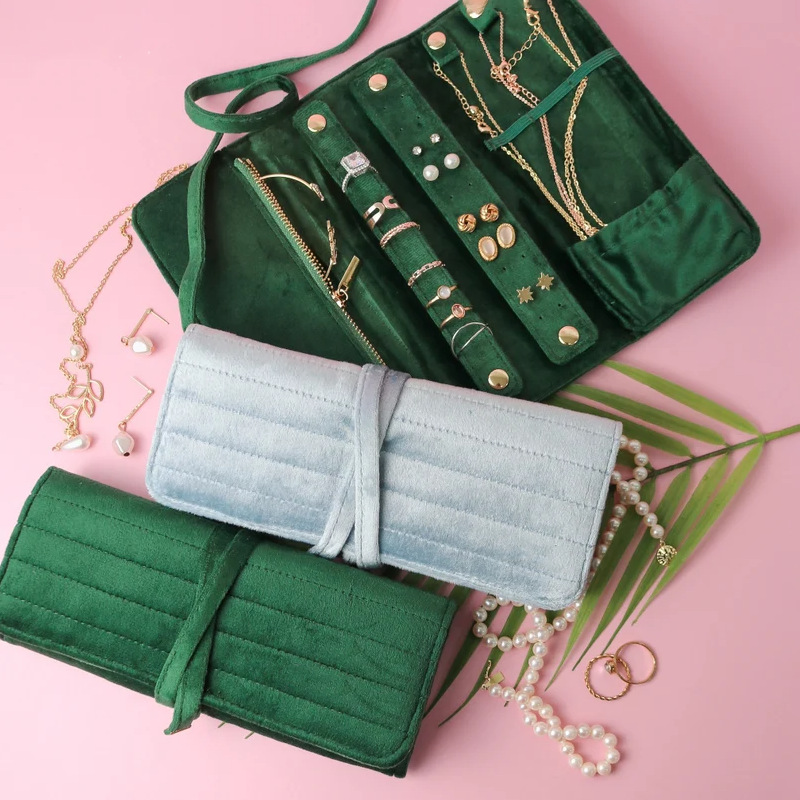 Exquisite Velvet Fabric Jewelry Storage Bag Suede Jewelry Storage Roll Multifunctional Roller Blind Jewelry Bag